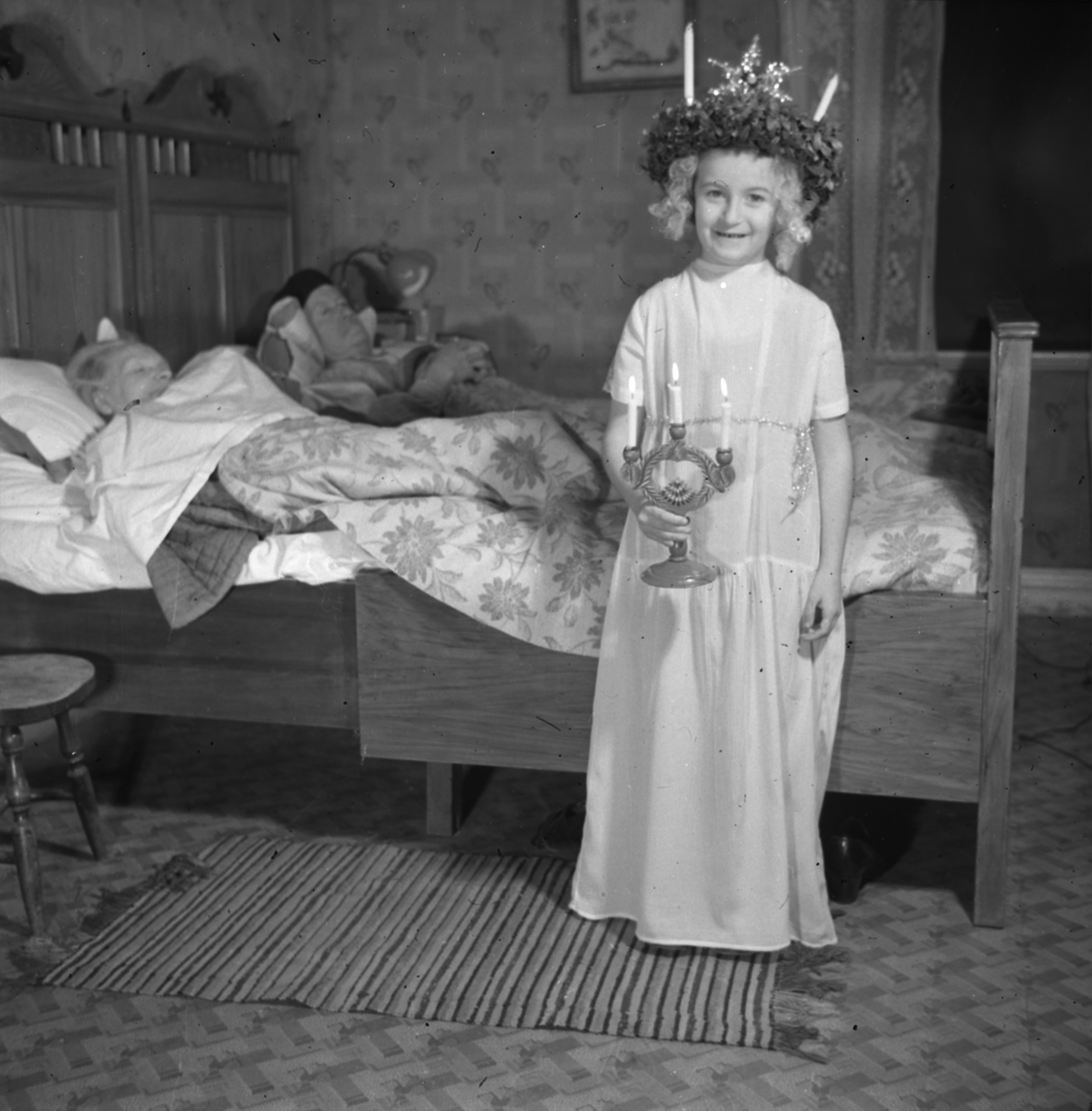 Flicka lussar på luciamorgonen