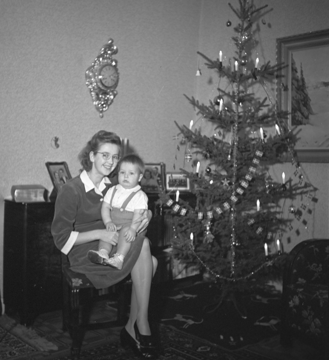 Mor och son vid julgran