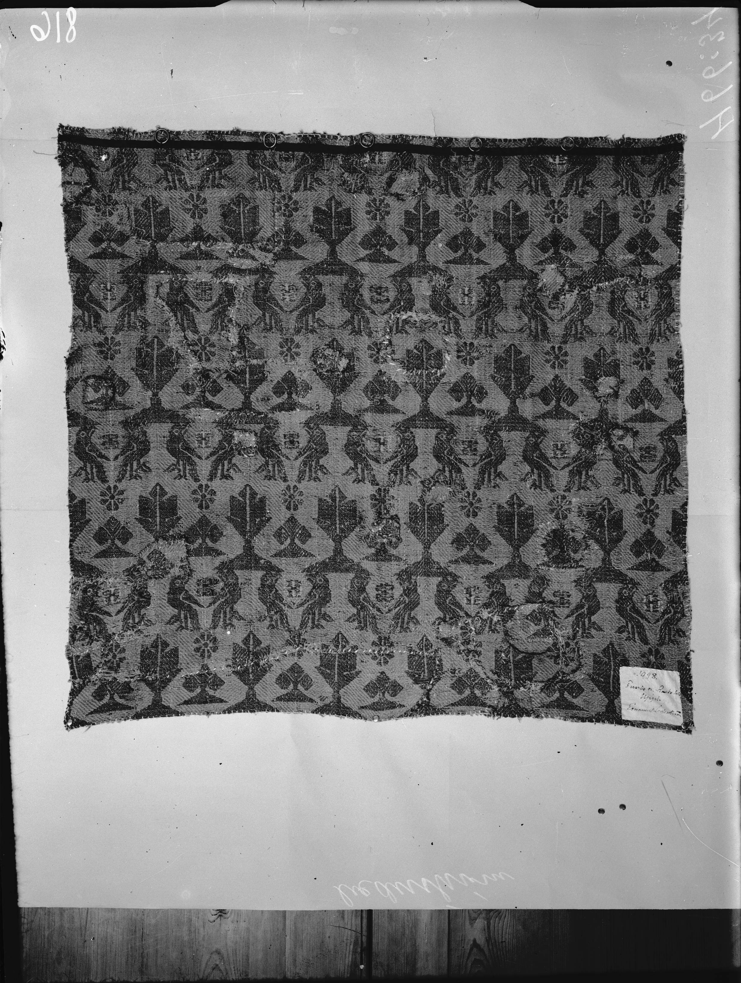 Dubbelvävnad i ull och linne, 1400-talet. Troligen svenskt.