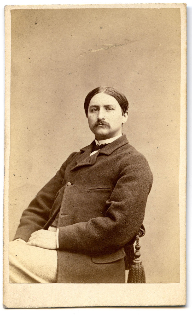 Porträtt på en man i halvfigur sittande.