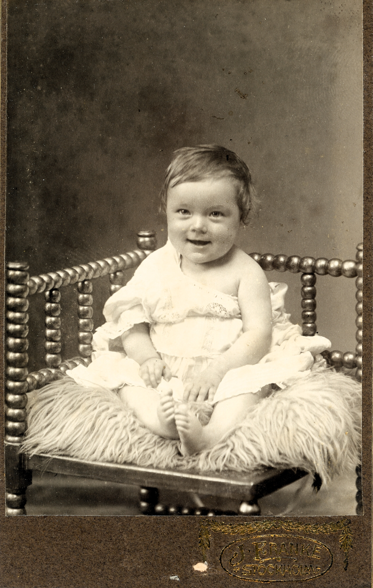 Barnpporträtt. Text baksida kort: Karin Maria Gröndahl, 14 månader gammal.