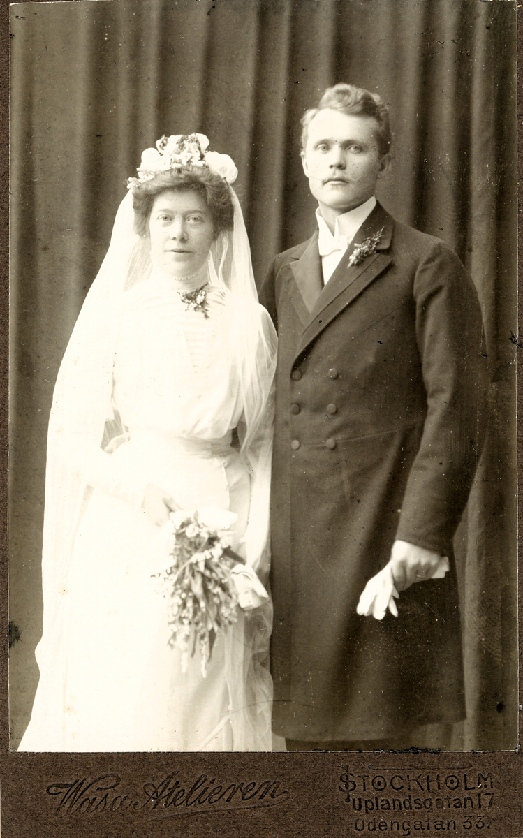 Bröllopsporträtt. Text baksida kort: "Minne från d. 24/4 1910".