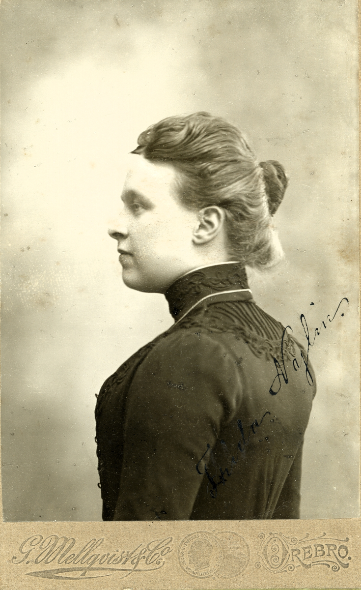 Porträtt av Frida Nylin (enligt text framsida kort).