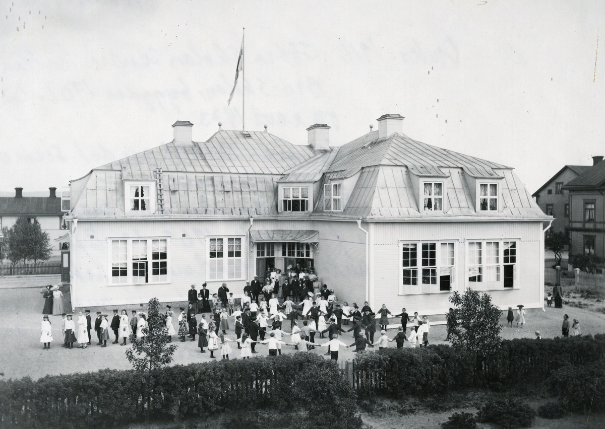 Bilden är fr. något mer högtidligt tillfälle än en vanlig skoldag. Kan troligen vara en skolavslutning.