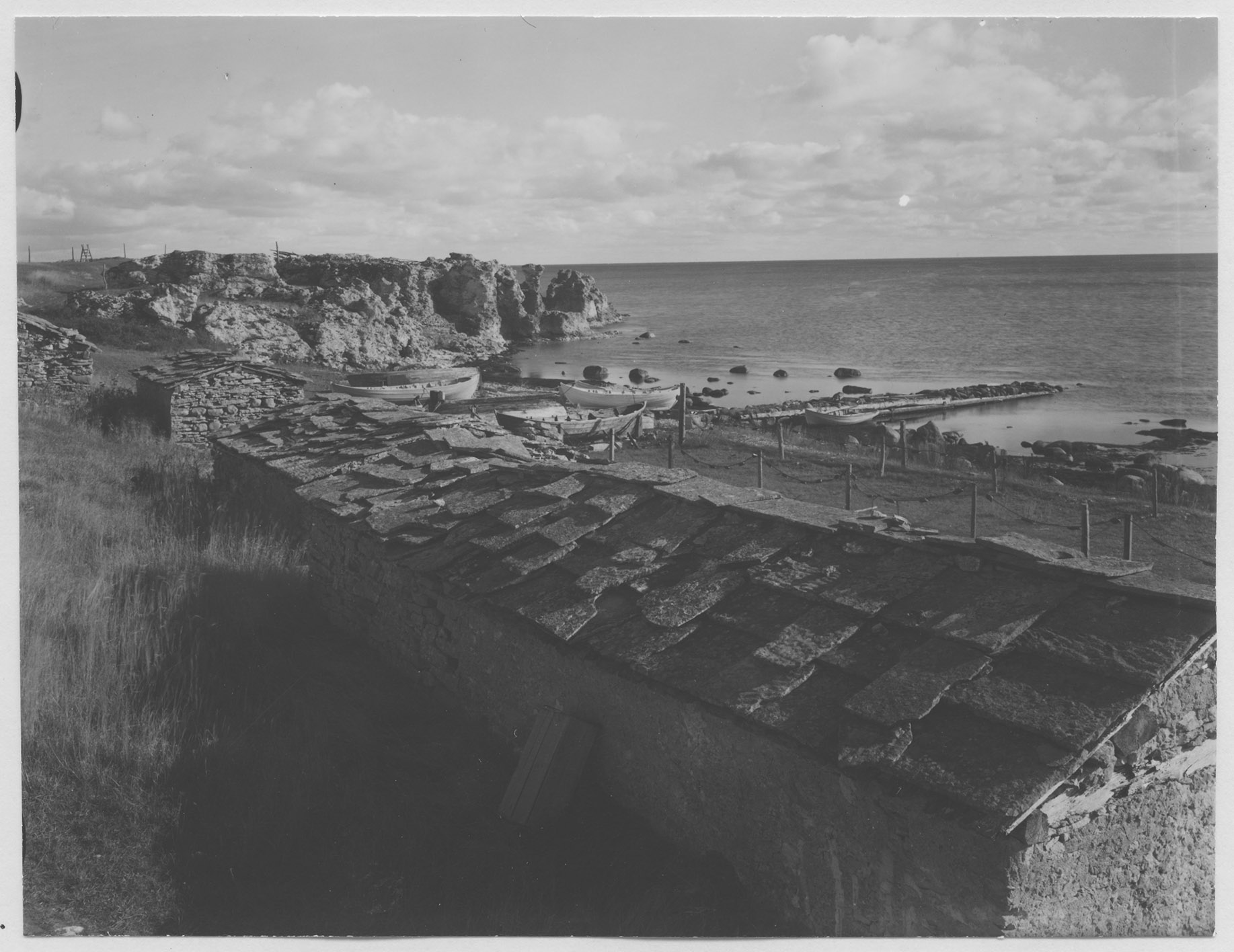Beskrivning: Sjöbodar med flistak