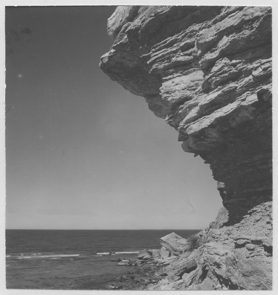 Beskrivning: Utsikt över havet med kalkstensklippor