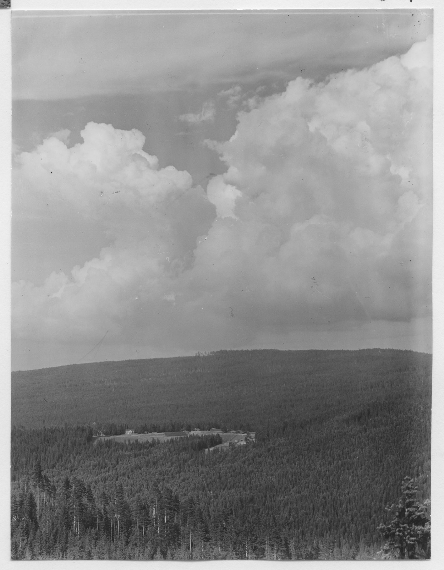 Beskrivning: En gård i skogen vid Ljungans övre lopp