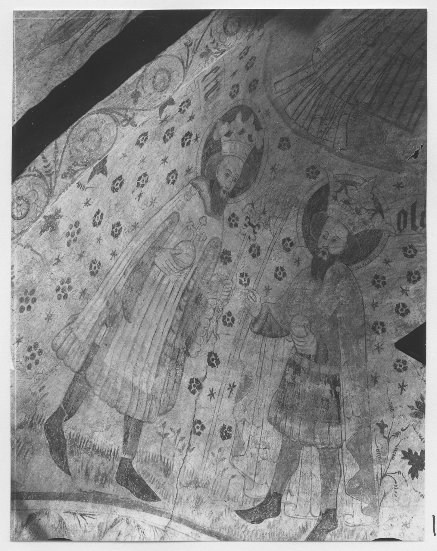 Beskrivning: Interiör i kyrkan T.v. om orgeln; S. Erik o S. Olof
