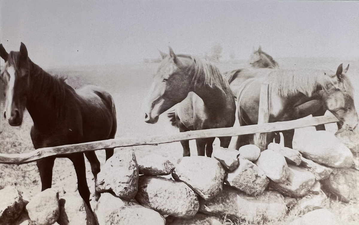 Smålands artilleriregemente, A 6. Hästar i väntan på inmönstring. Foto från år 1906.