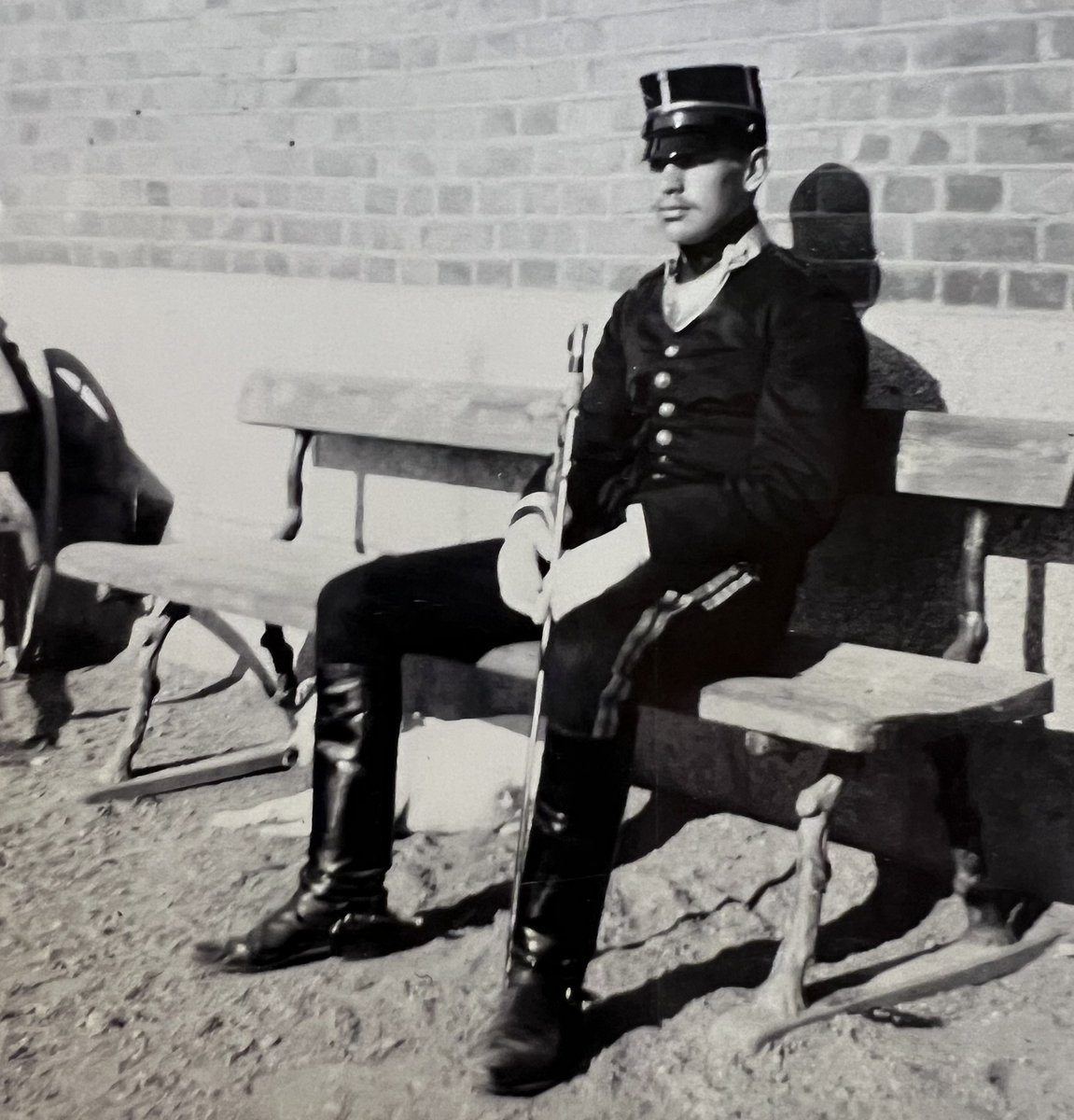 Smålands artilleriregemente, A 6. Underlöjtnant friherre G A Lagerfelt som dagofficer. Foto från år 1906.