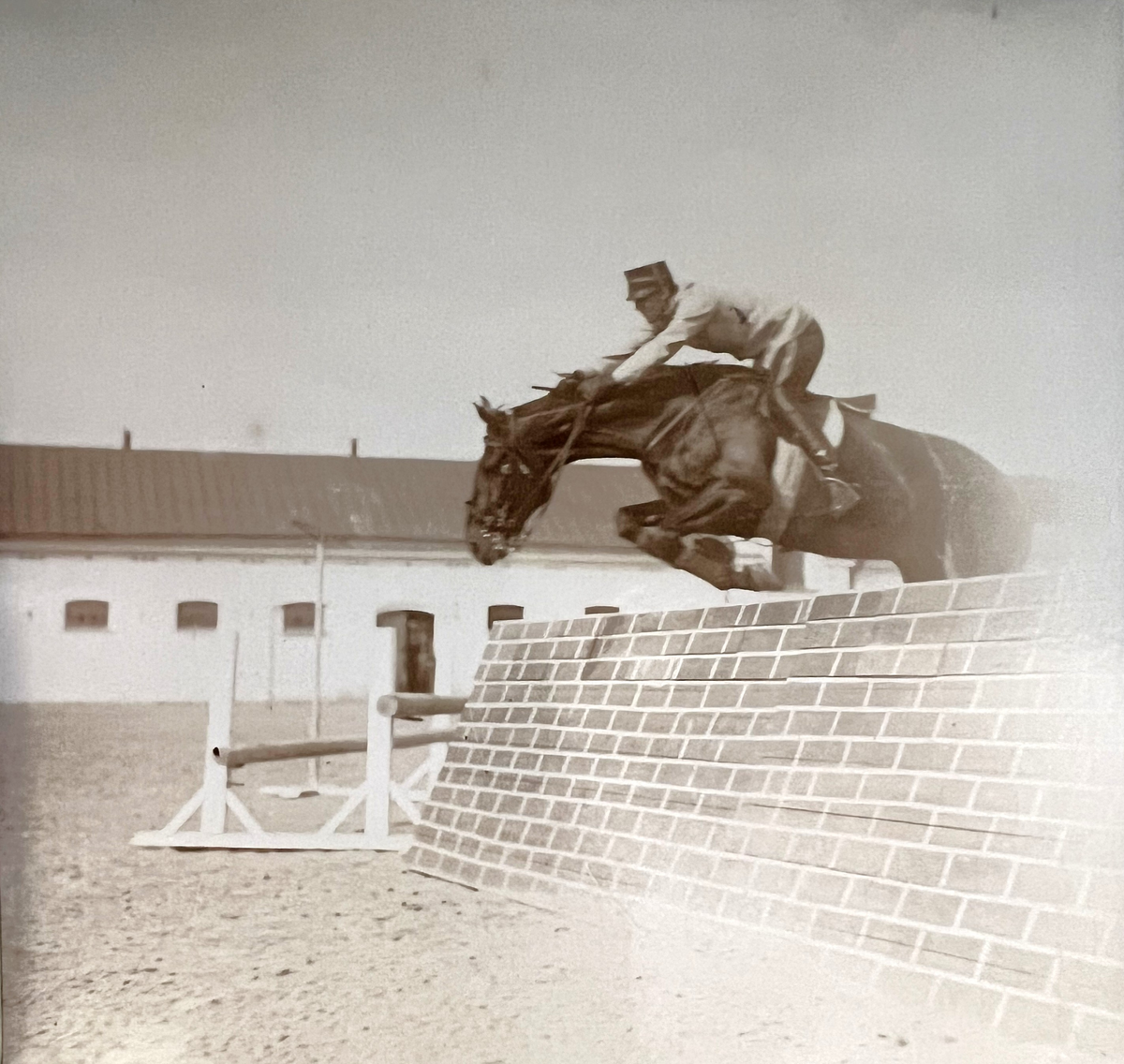 Smålands artilleriregemente, A 6. Löjtnant E L G Pantzerhielm på hästen "Mercedes". Foto från år 1912.