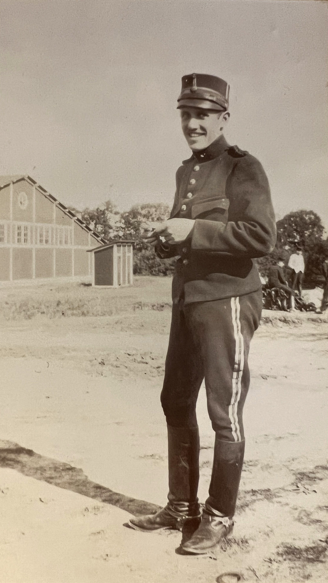 Smålands artilleriregemente, A 6. Underlöjtnant B P Löwenadler på kaserngården. Foto från år 1906.