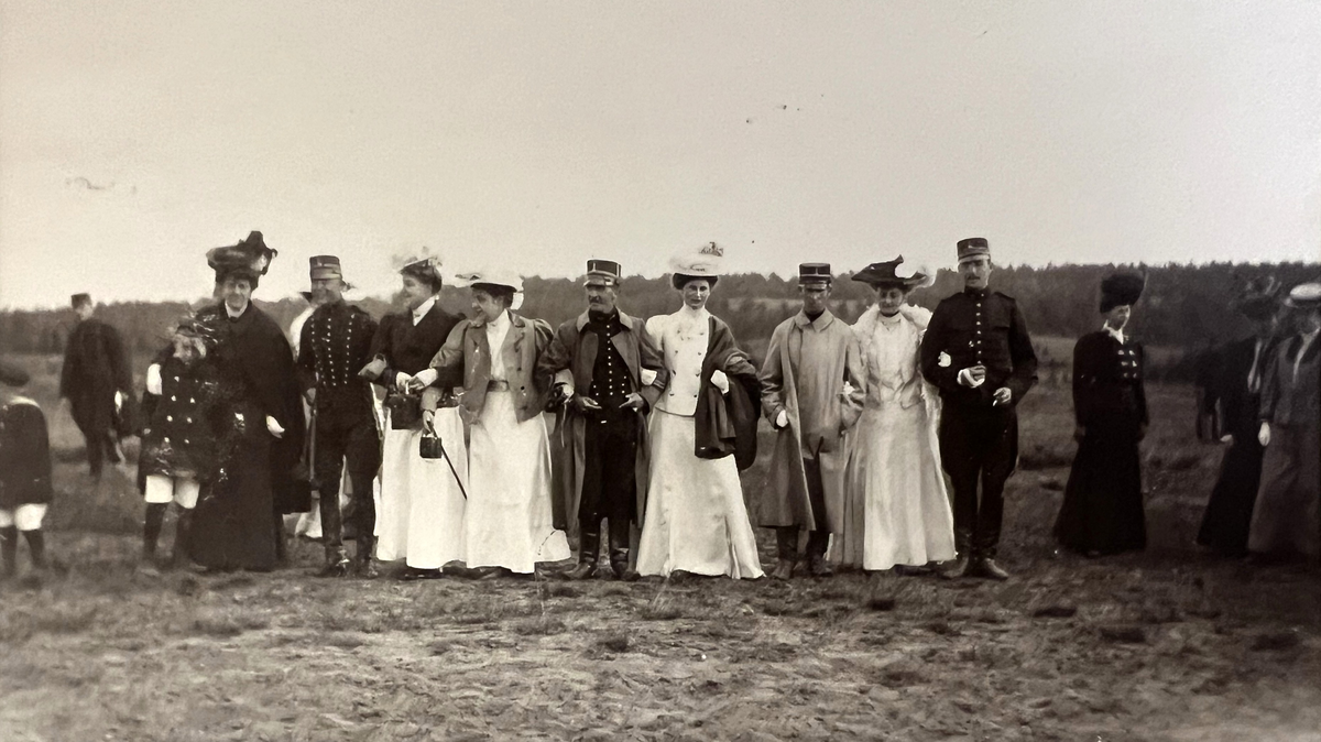 Smålands artilleriregemente, A 6. Fr v: okänd, okänd, okänd, fru Grahl, underlöjtnant E L G Pantzerhielm, fröken Lilliecreutz x 2, underlöjtnant C M M Grönwall, fröken Kugelberg, underlöjtnant H A F Cedercrona, fröken Hård af Segerstad, Edén, fru Ekstrand, okänd, fru Wibeck. Foto från år 1906-1907.
