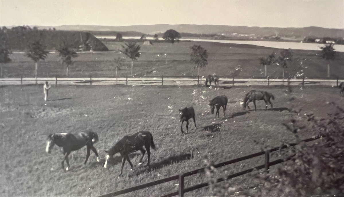 Smålands artilleriregemente, A 6. Hästar på grönbete. Foto från år 1908.