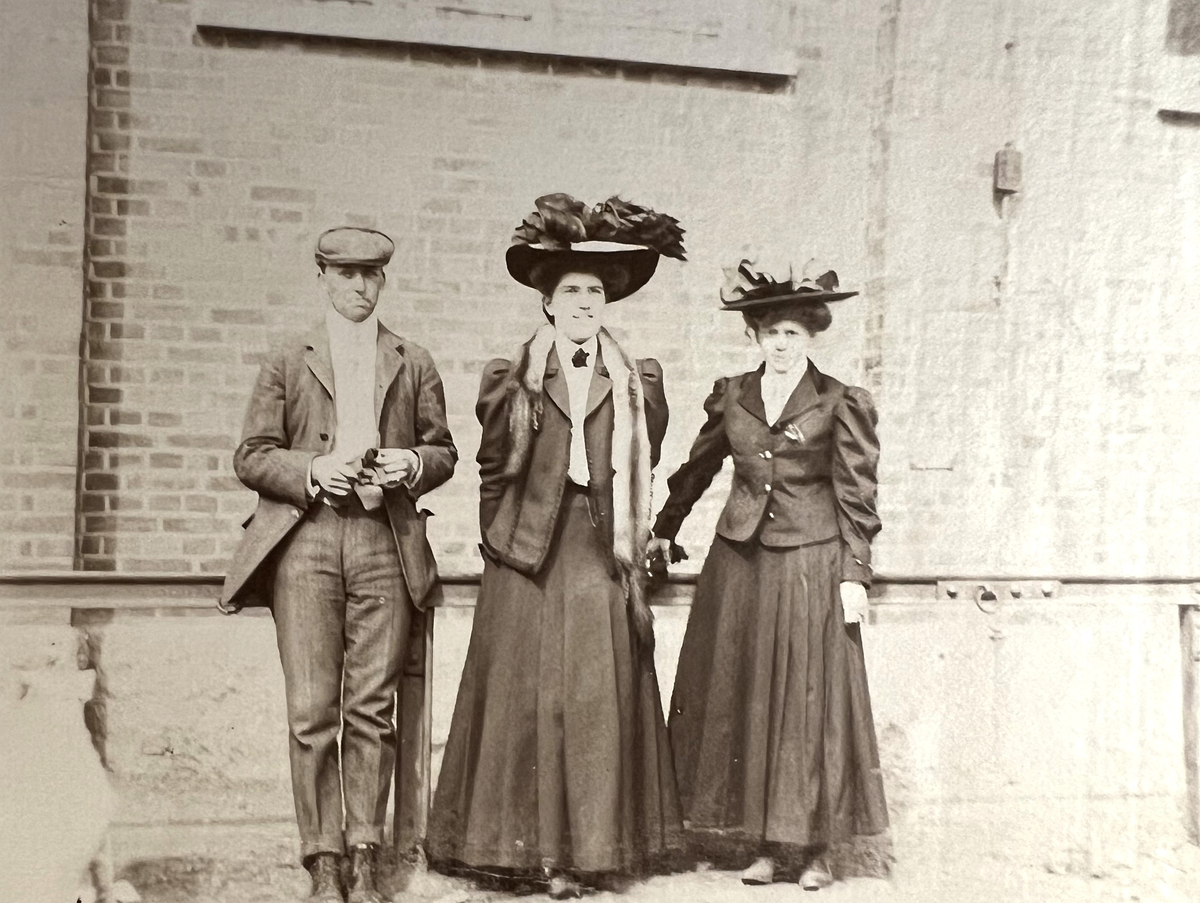 Smålands artilleriregemente, A 6. Fr v: Löjtnant E L G Pantzerhielm civilklädd, oläsligt, fröken Engström. Foto från c:a år 1915.