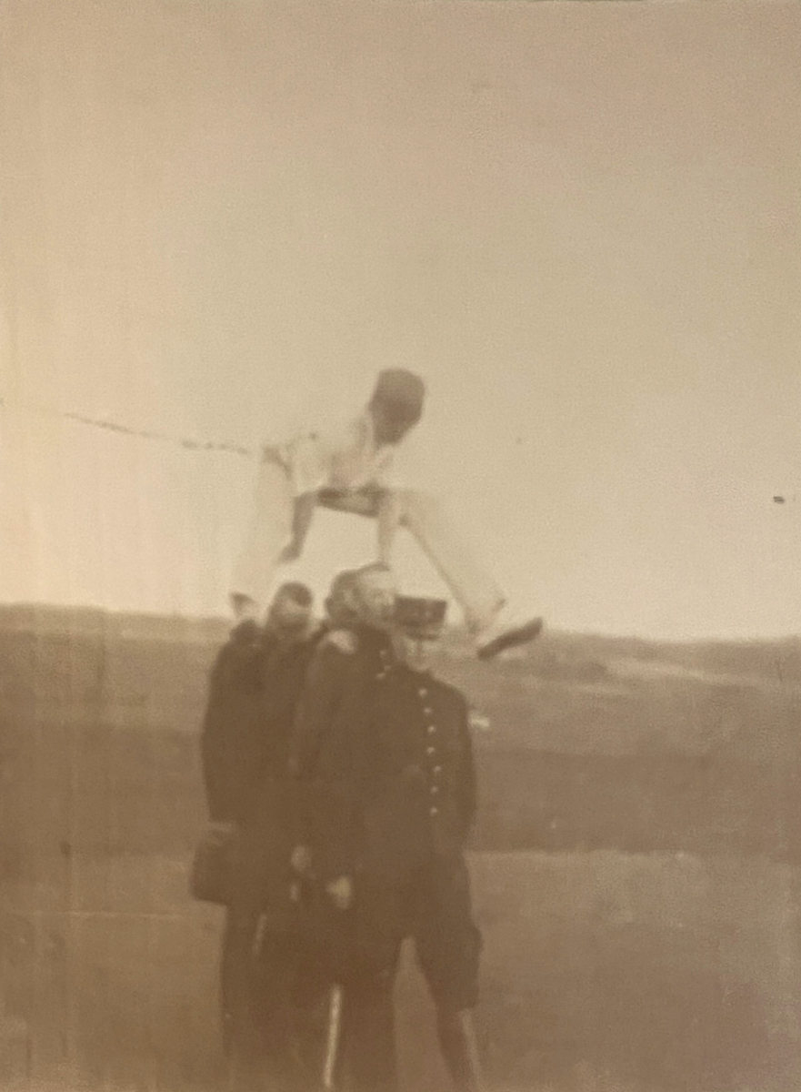 Smålands artilleriregemente, A 6. Sedermera kapten C Holmer hoppar över kamrater. Foto från år 1908-1909.