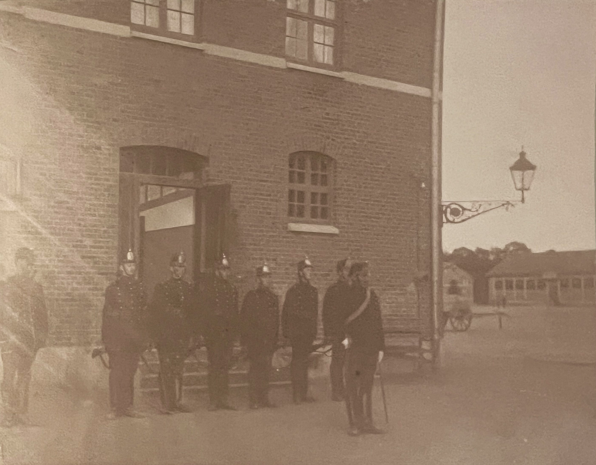 Smålands artilleriregemente, A 6. Kasernvakten - vaktbefälhavare sergeant Fogelström. Foto från år 1905.