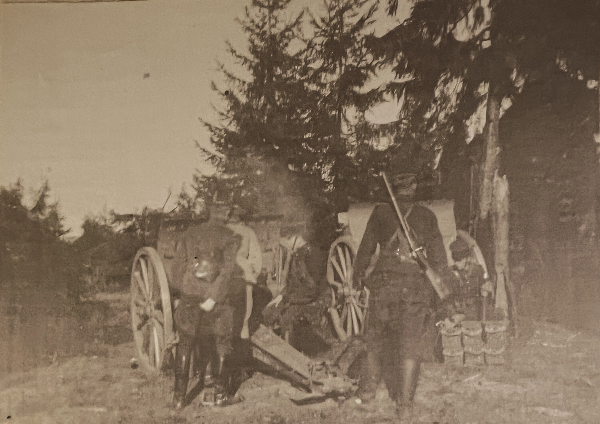 Smålands artilleriregemente, A 6. Underlöjtnant H Gustafsson bakom en 7,5 cm kanon m/1902. Foto från c:a år 1910.
