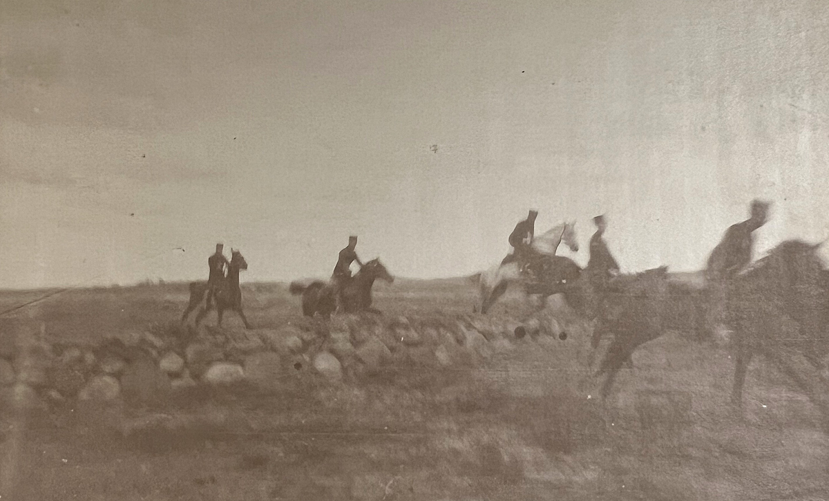 Smålands artilleriregemente, A 6. Hubertusjakt. Främst löjtnant friherre S W J Stjernstedt. Foto från c:a år 1910.