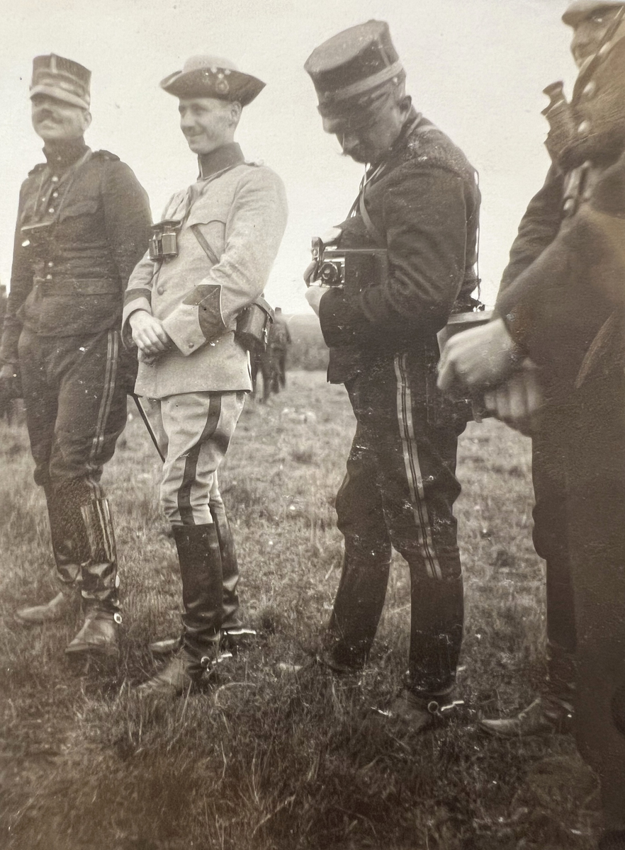 Smålands artilleriregemente, A 6. Fr v: underlöjtnant J A Hygerth, veterinär Forén, kapten "Kujje". Foto från c:a år 1912.