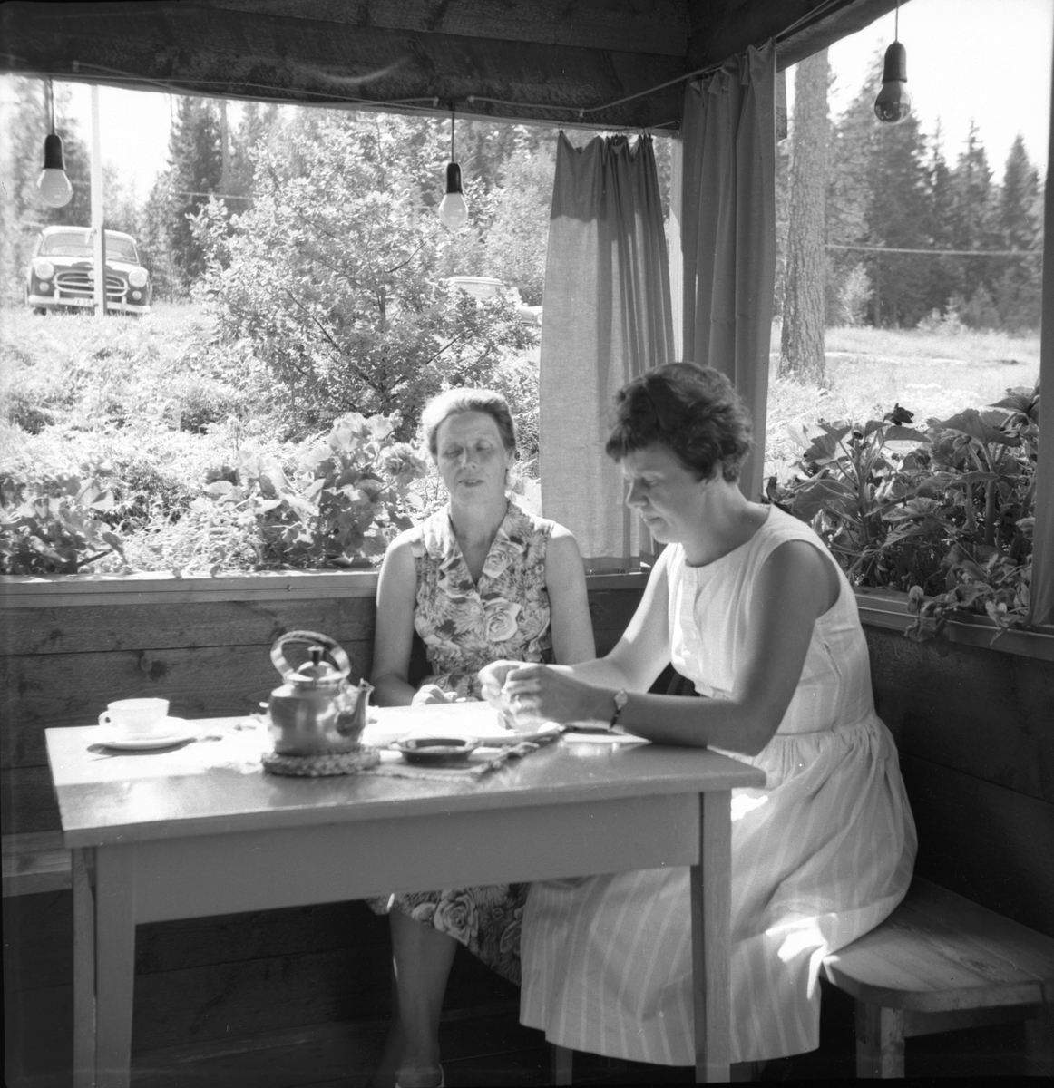 Fikastund i sommarstugan. Kvinnan till höger Astrid Egnell
