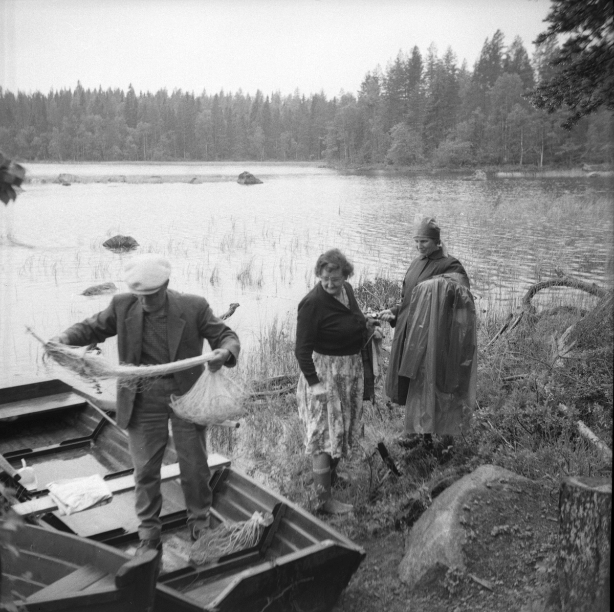 Fiskefänge. Mannen tar hand om nätet