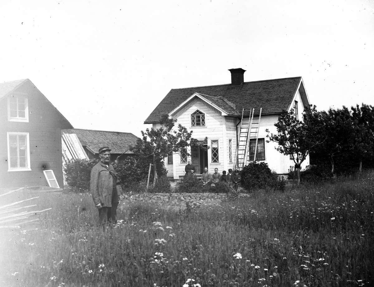 Familj utanför bostadshuset.