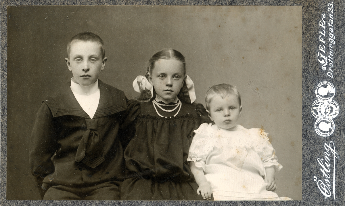 Porträtt av tre barn i olika åldrar.