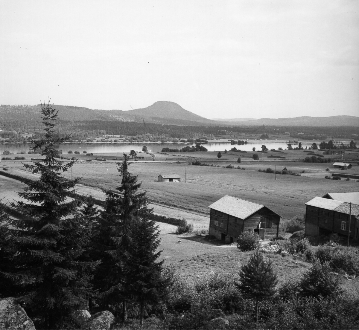 Utsikt över Järvsö socken, i förgrunden en kornlada.