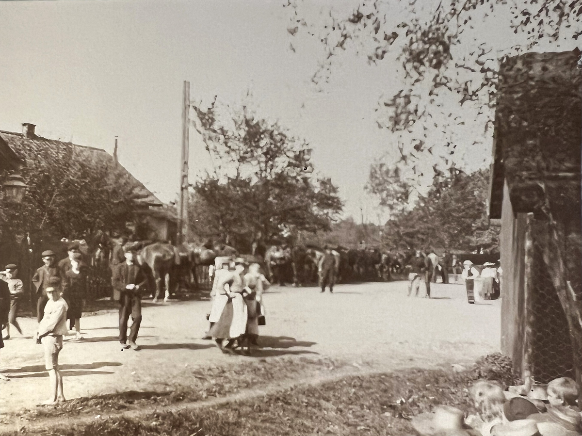 Smålands artilleriregemente, A 6. Oidentifierad vy med såväl civila som militärer. Foto från c:a år 1910.