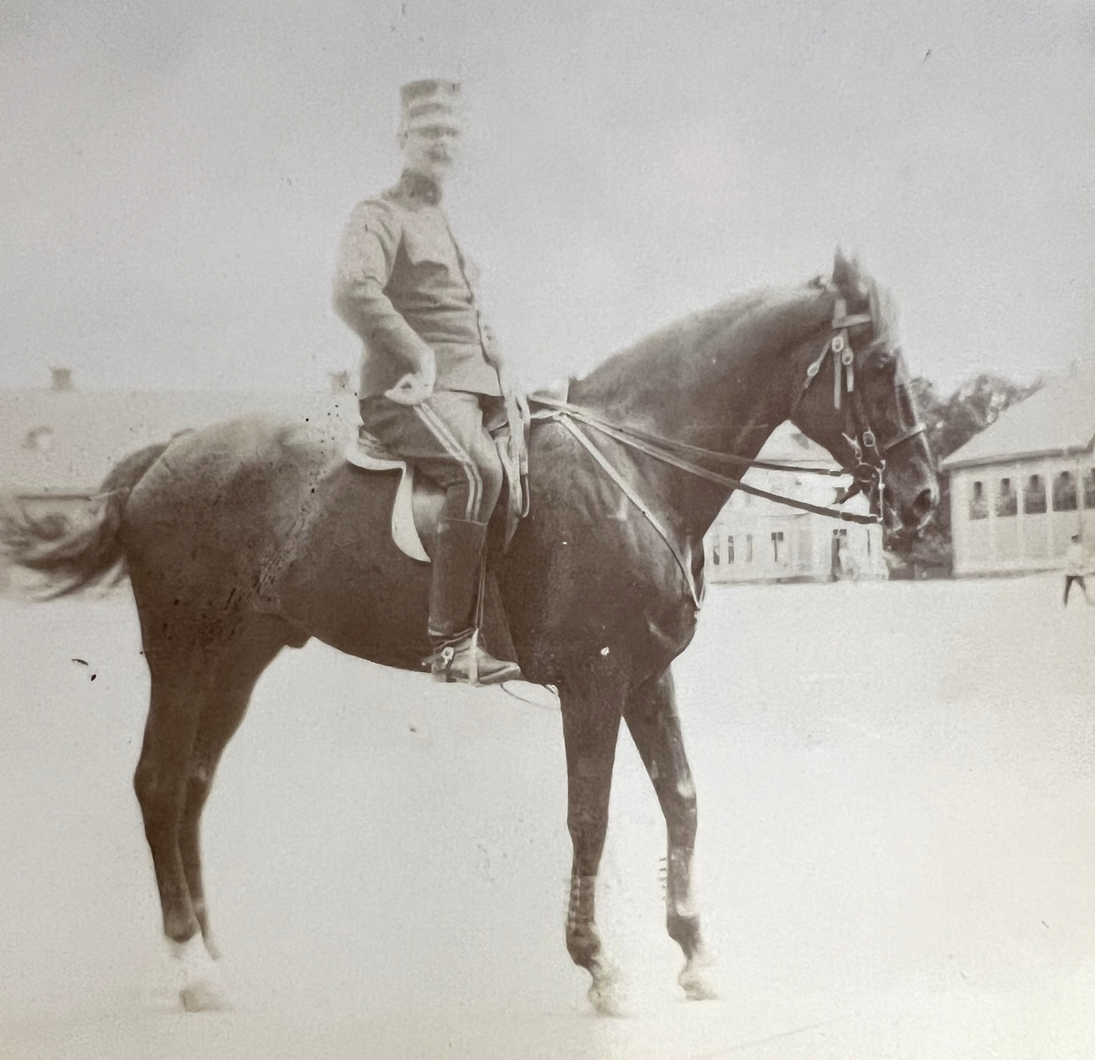 Smålands artilleriregemente, A 6. Löjtnant K L E A Jerling till häst. Foto från år 1905.