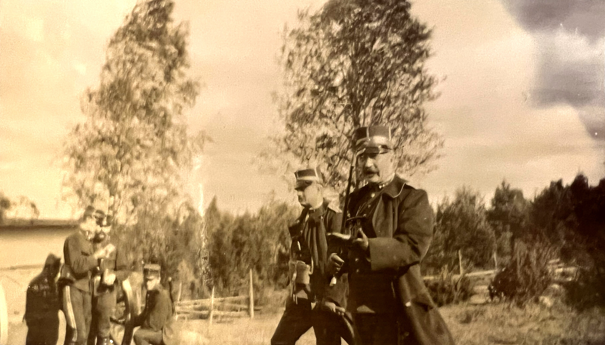Smålands artilleriregemente, A 6. Fr h: överste David Hedengren, major B A S von Geijer. Foto sannolikt från år 1908.