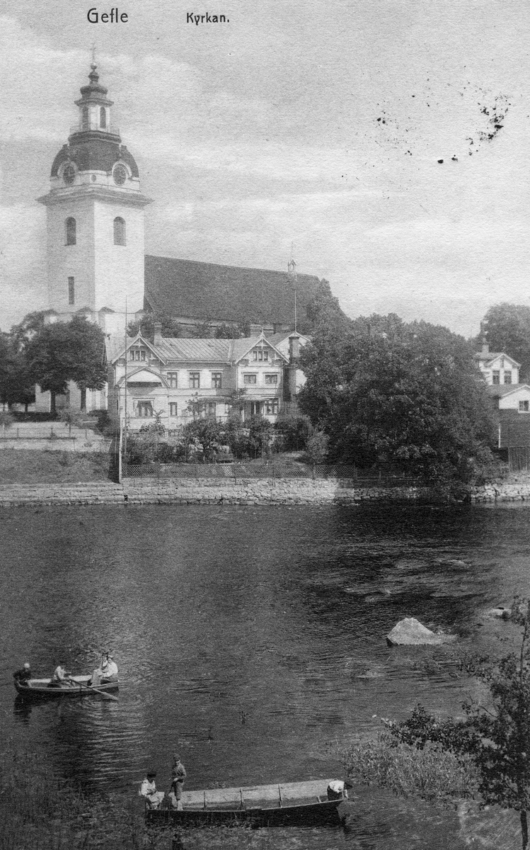 Gävle, "Gefle, Kyrkan". Ett brevkort Till Fru Lotten Bylund, Döbelnsgatan 29, 4 tr. Stockholm. Med texten "Hjärtligaste gratulationer! Har idag haft kortbref fr. Elisabet; så att jag kan hälsa så mycket! Jag har också just nu besvarat det med ett långt bref! Hälsa Morbror mycket! Anna".