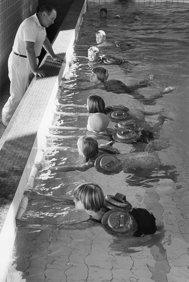 Simkurs på Lillhagsbadet, Bomhus. Från utställningen "Gävlar i stan" på Gävle Museum 1967.