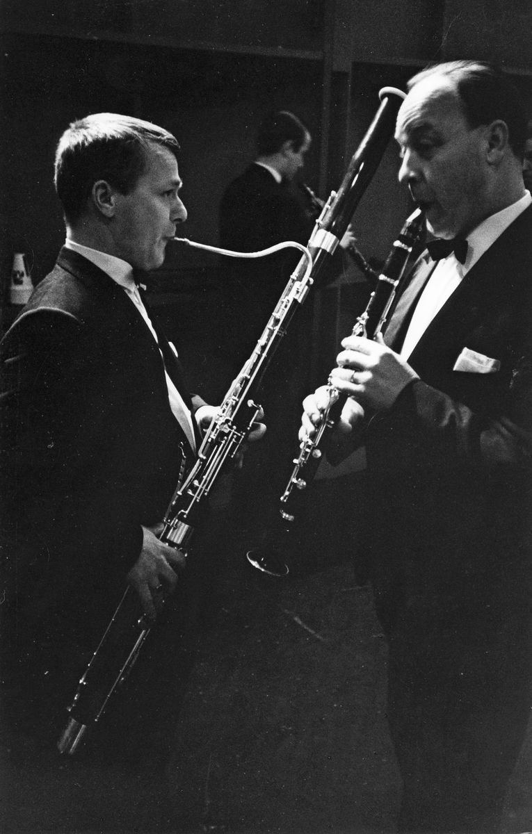"När länsorkestern spelar upp i den magnifika 1800-tals-teatern, då är det högtid i Gävle, då visar en kultur-medveten provinsmetropol toppen av vad den förmår". Bilden finns med i boken "Ett 4faldigt leverne". Text Allan Lundberg och Foto Svante Hedin. Från utställningen "Gävlar i stan" på Gävle Museum 1967.