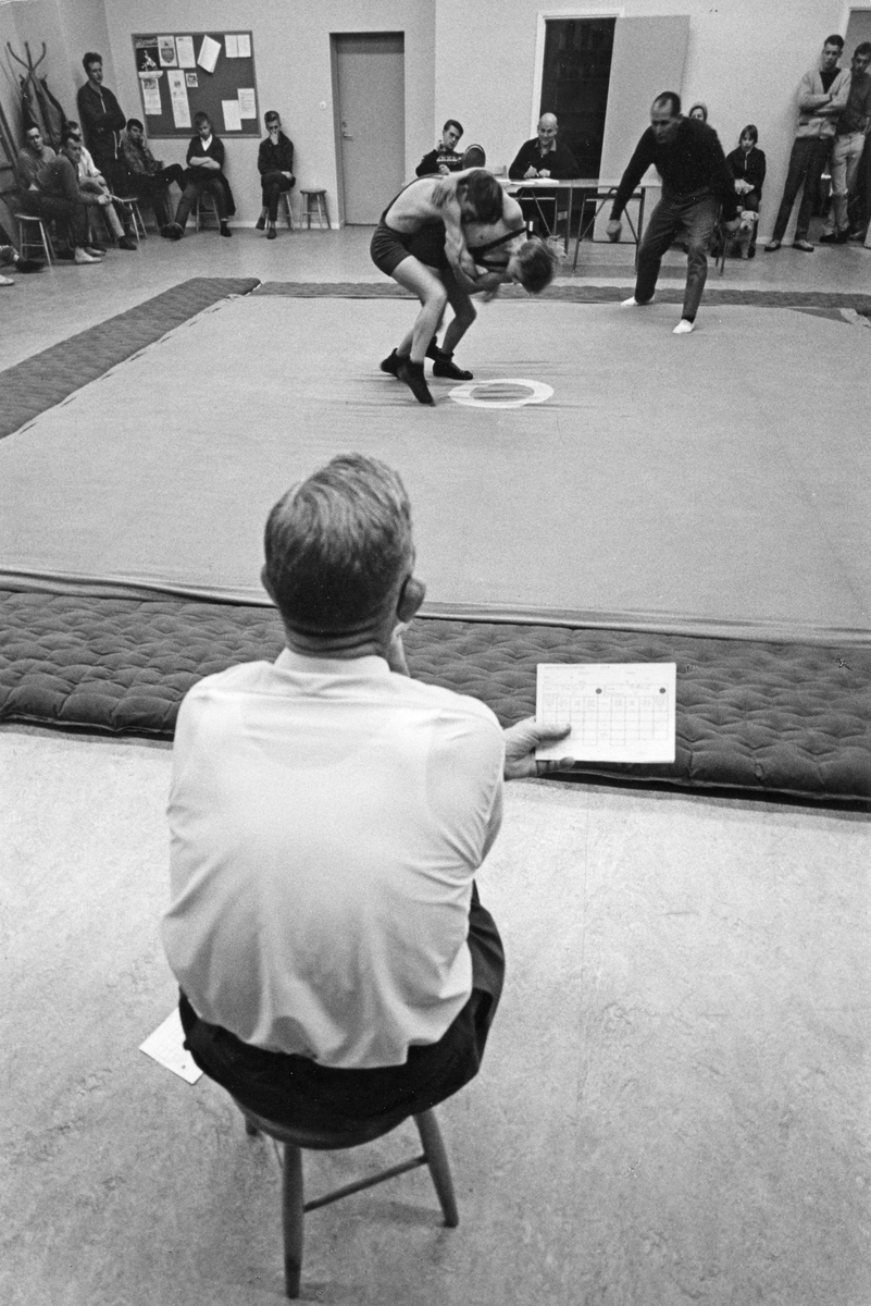 Kampsport. Brottning i Gävle. Från utställningen "Gävlar i stan" på Gävle Museum 1967.