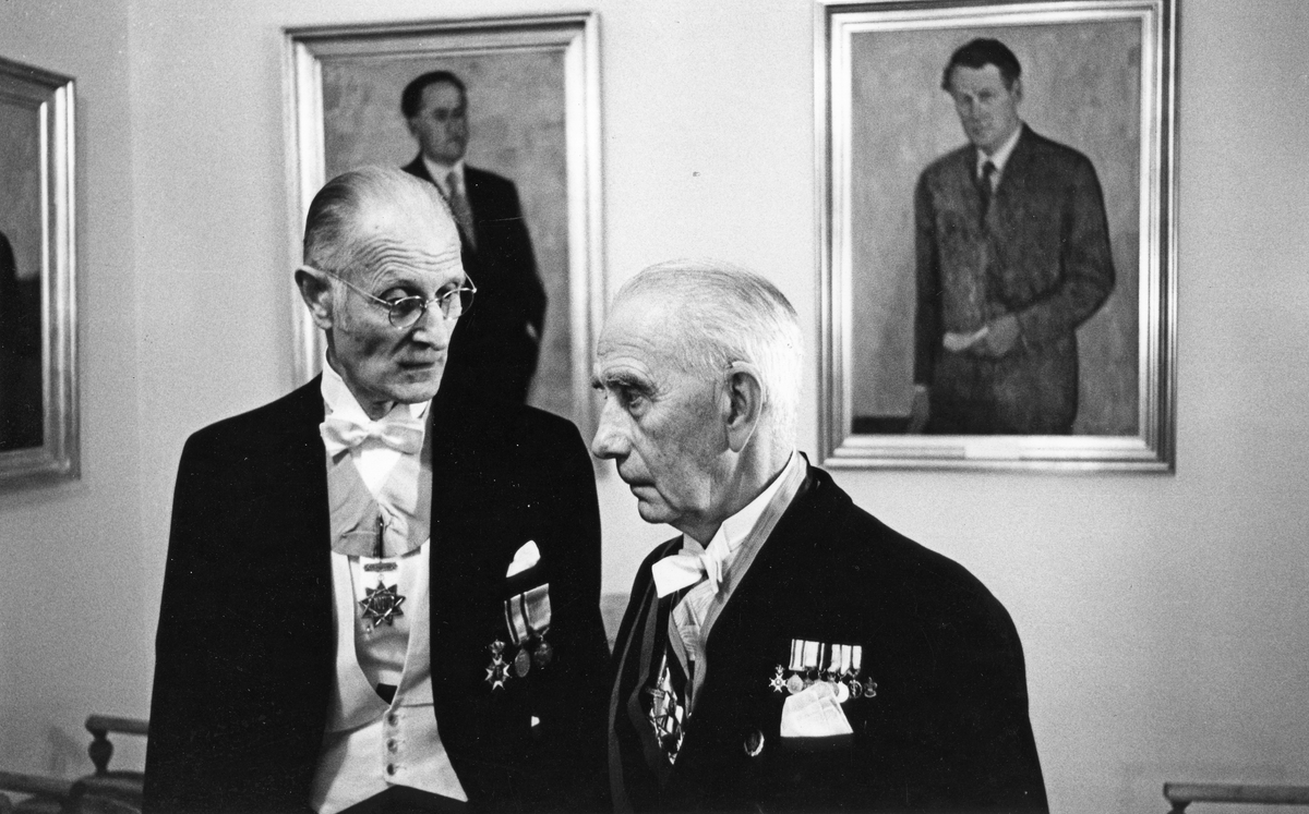 "I Gävle avtecknar sig modern stadspolitik av samlings-modell mot gammal borgerlig kulturmiljö - eller tvärtom". NT-Ordens 100-årsjubileum i Stadshuset, Gävle. Bilden finns med i boken "Ett 4faldigt leverne". Text Allan Lundberg och Foto Svante Hedin. Från utställningen "Gävlar i stan" på Gävle Museum 1967. November 1966.