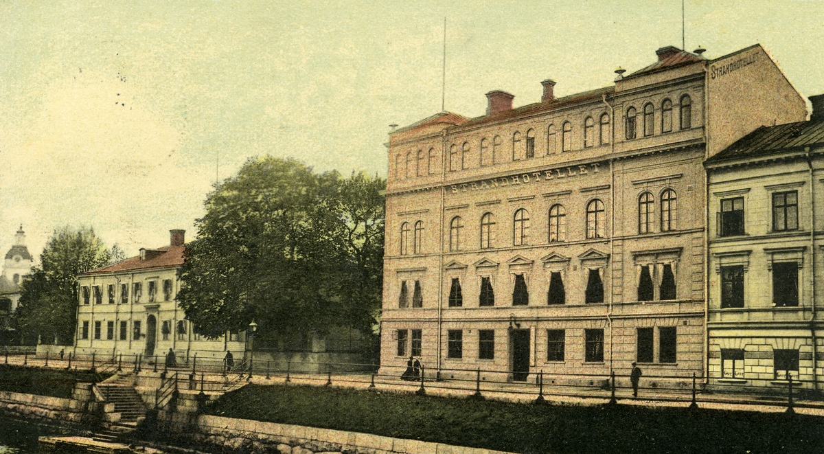 Gävle, Borgarskolan "Strand". Ett brevkort Till Familjen Bylund, Döbelnsgatan 29, 4 tr. Stockholm. Med texten"Hjärtligt tack för telegrammet och för senast! Många hälsningar. Anna".
