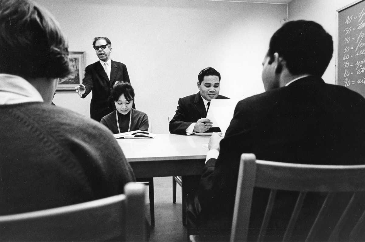Svenska för utlänningar i Gävle. Från utställningen "Gävlar i stan" på Gävle Museum 1967.