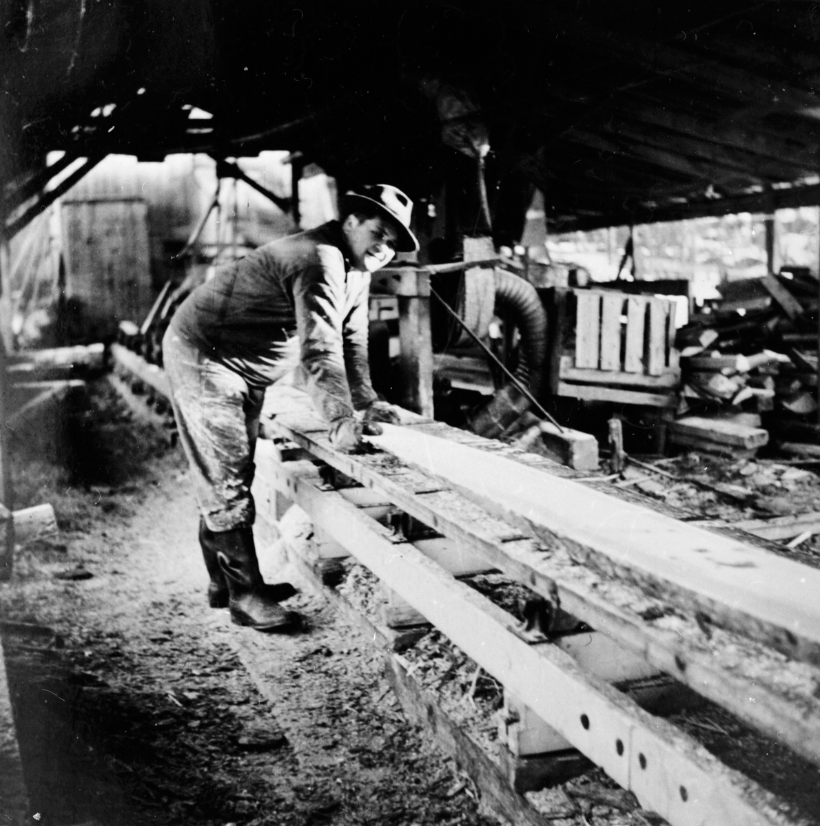 Pontus Larsson i arbete i Isakssons såg 1950.