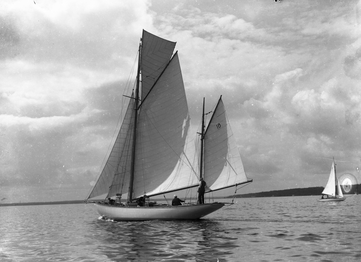 Gävle Segelsällskap. År 1922 - 23. "Ingvor", Grosshandlare Josef Johansson. Segelarea 120 kvm. Konstruktör E. Herlin. Bilden är publicerad i boken "Gefle Segelsällskap 1880 - 1930. Minnesskrift vid Femtioårsjubeleet". Sid 221.