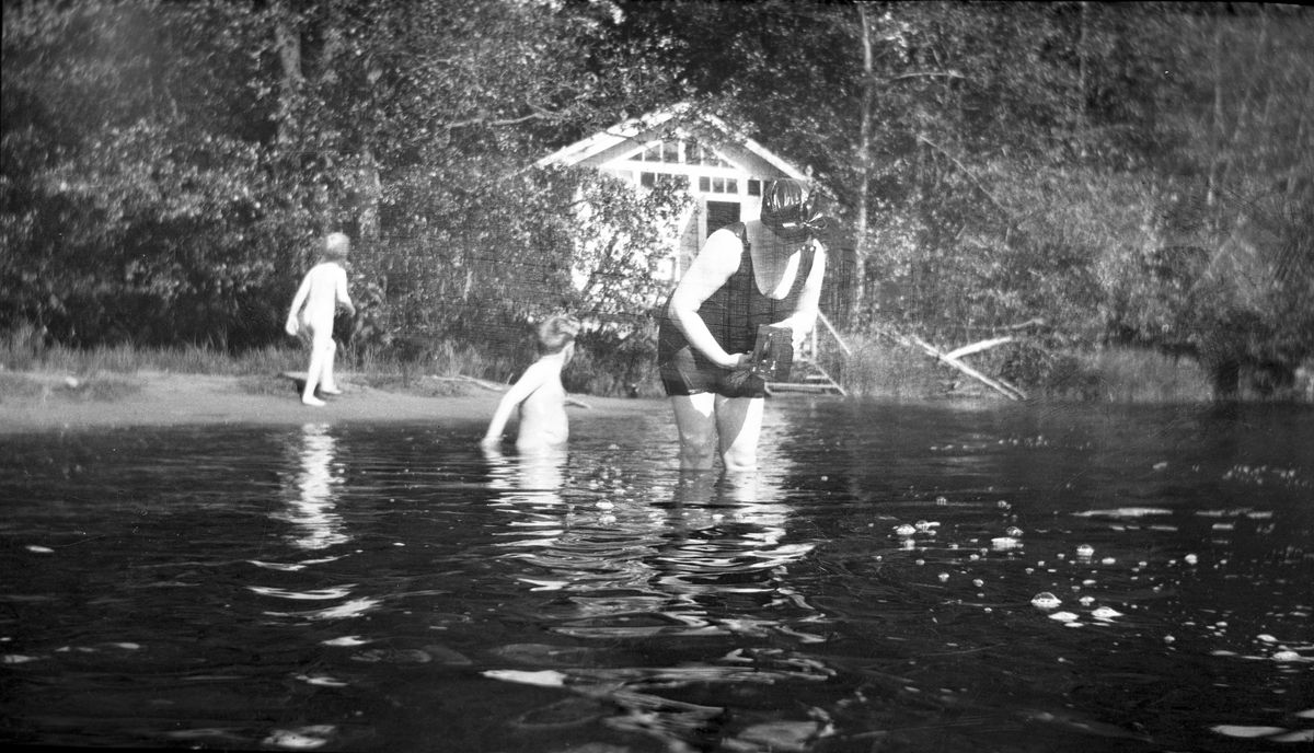 Vid badplatsen. Tidsomfånget är 1900 - 1940