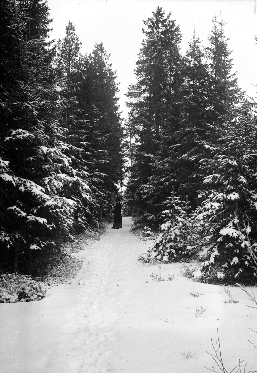Vinterväg i skogen. Tidsomfånget är 1900 - 1940