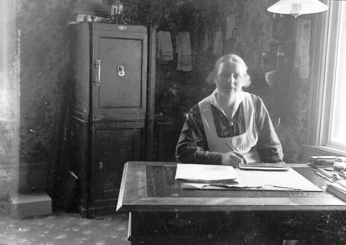 Sigrid vid skrivbordet. Tidsomfånget är 1900 - 1940