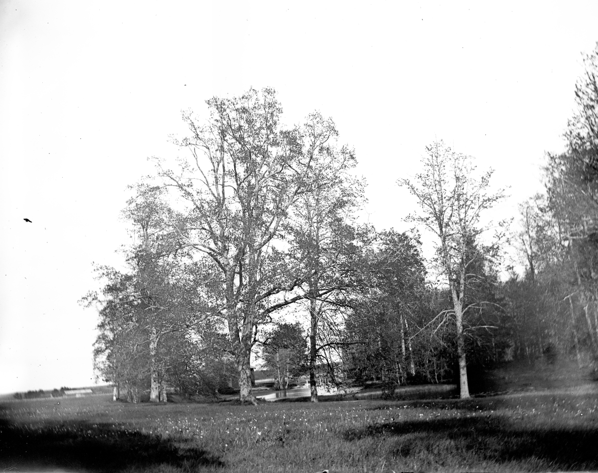 Vy av en ek vid ån vid tröskverket. Den 18 juni 1899
