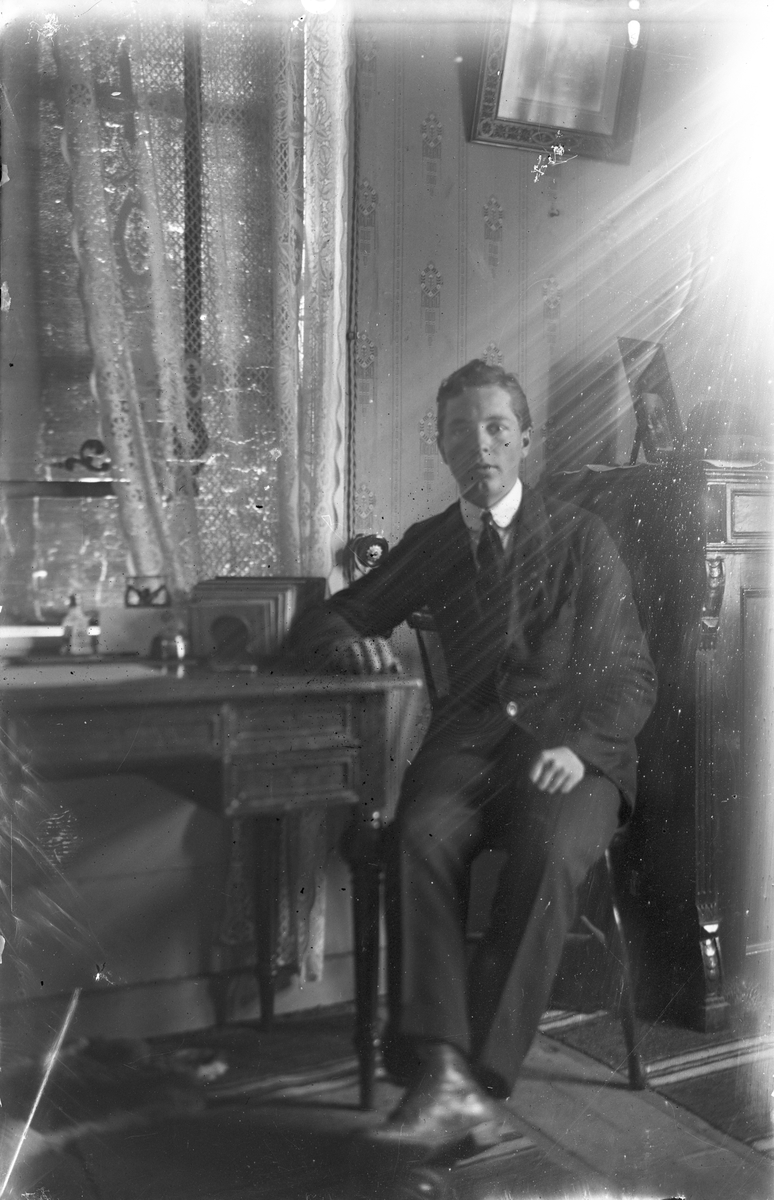 Ung man vid skrivbord.