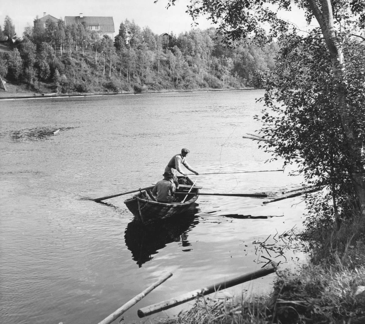 Två män i en båt. "Rumpan går", Testeboån, Åmot.