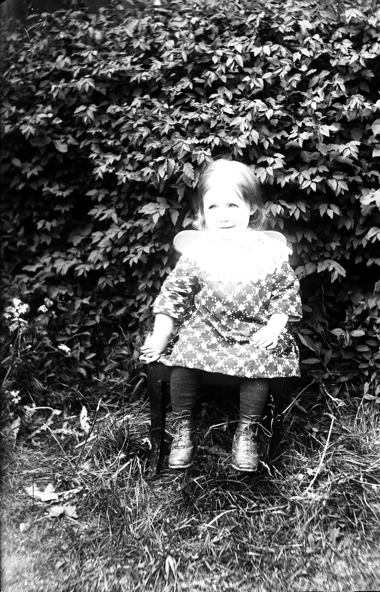 Porträtt av flicka på stol.