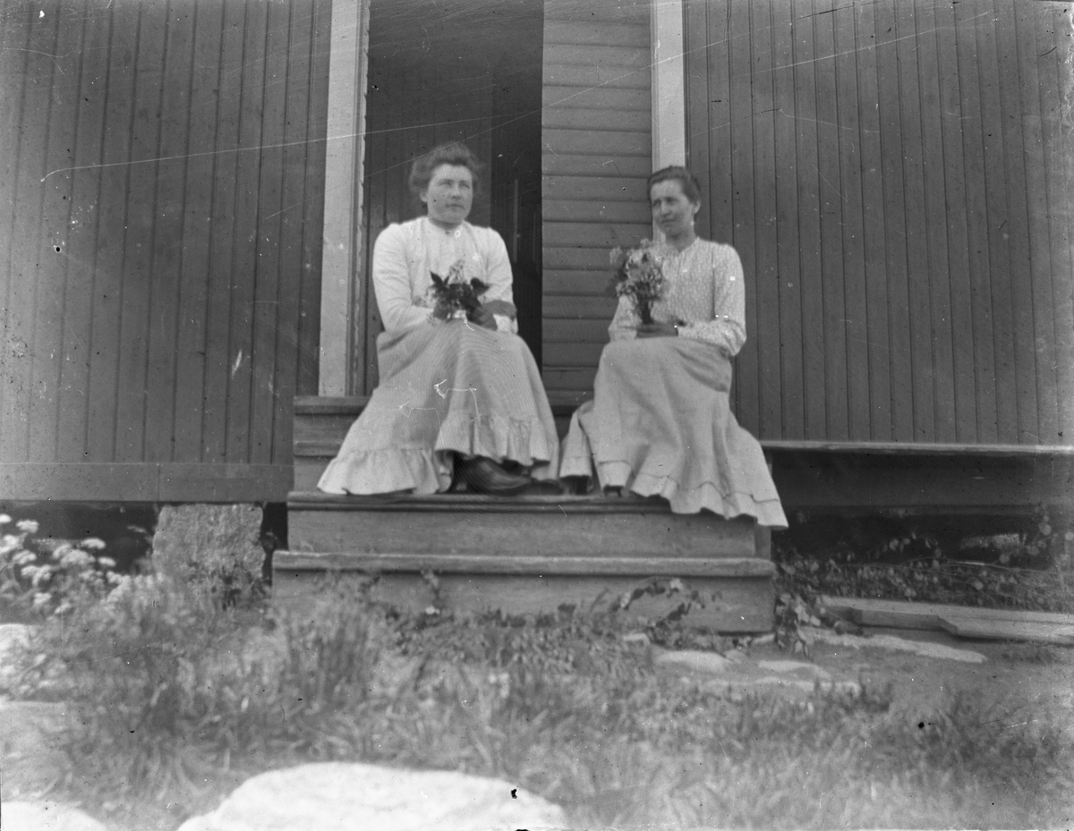 Två kvinnor på trappa.