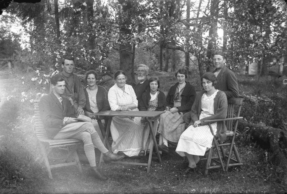 Gruppbild i trädgård.